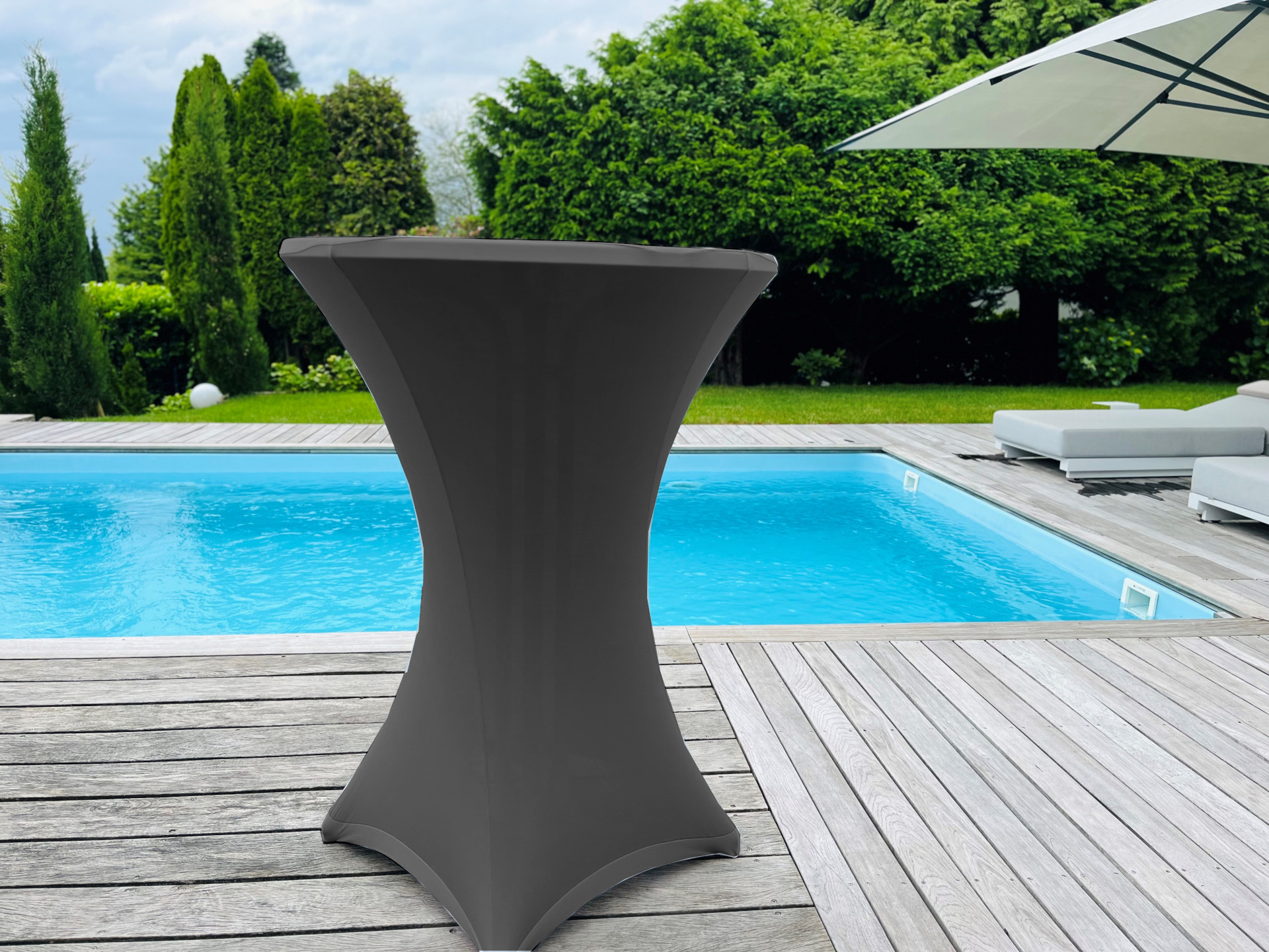 Stilvoller und eleganter Bezug für Ihre Stehtische / Bartische bei Festen, Gartenfeiern, Hochzeiten und Events. Einfache und edle Optik.