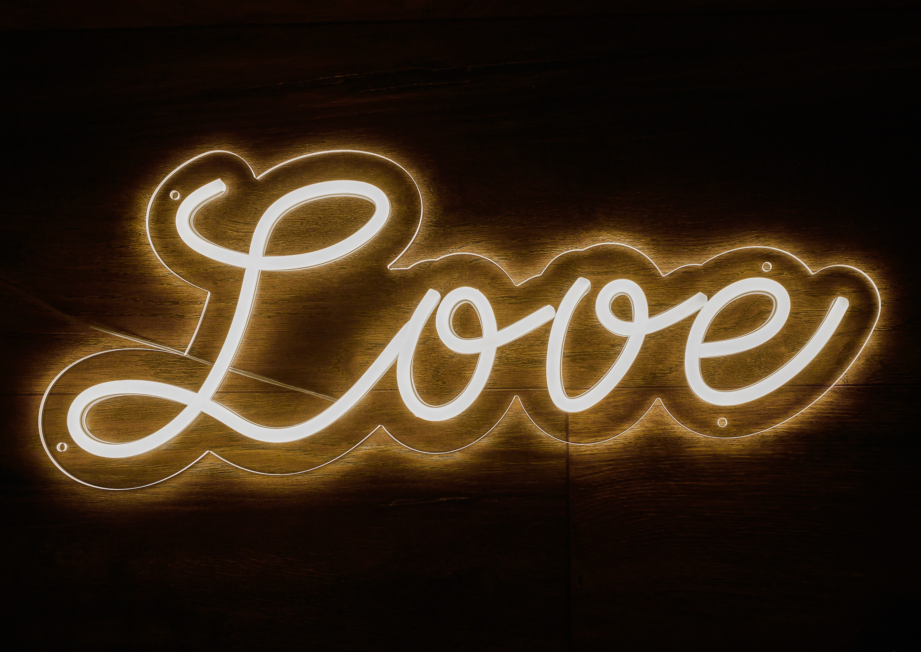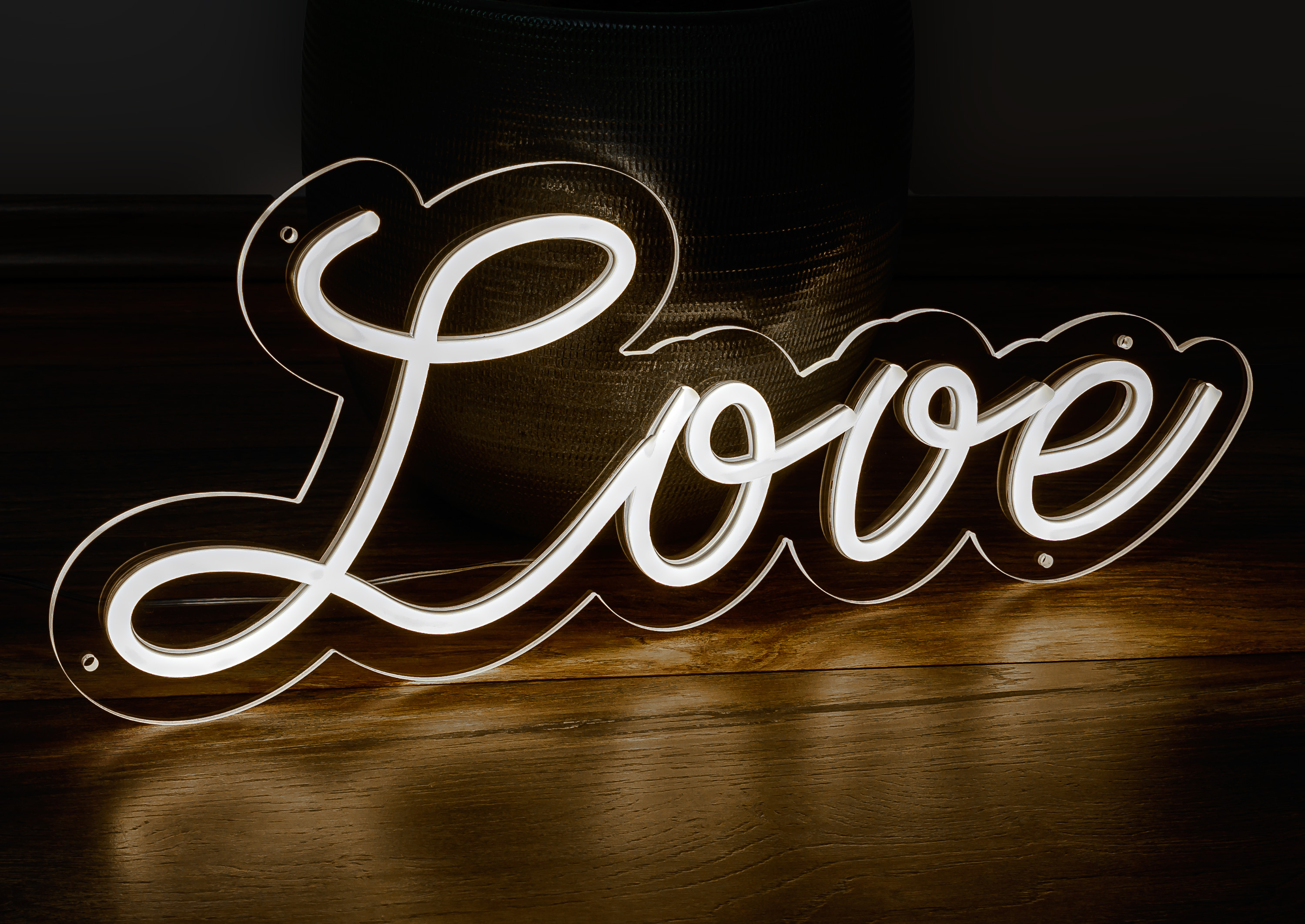 Schriftzug "Love" im Stil alter Neon-Röhren - mit moderner LED-Technik.
