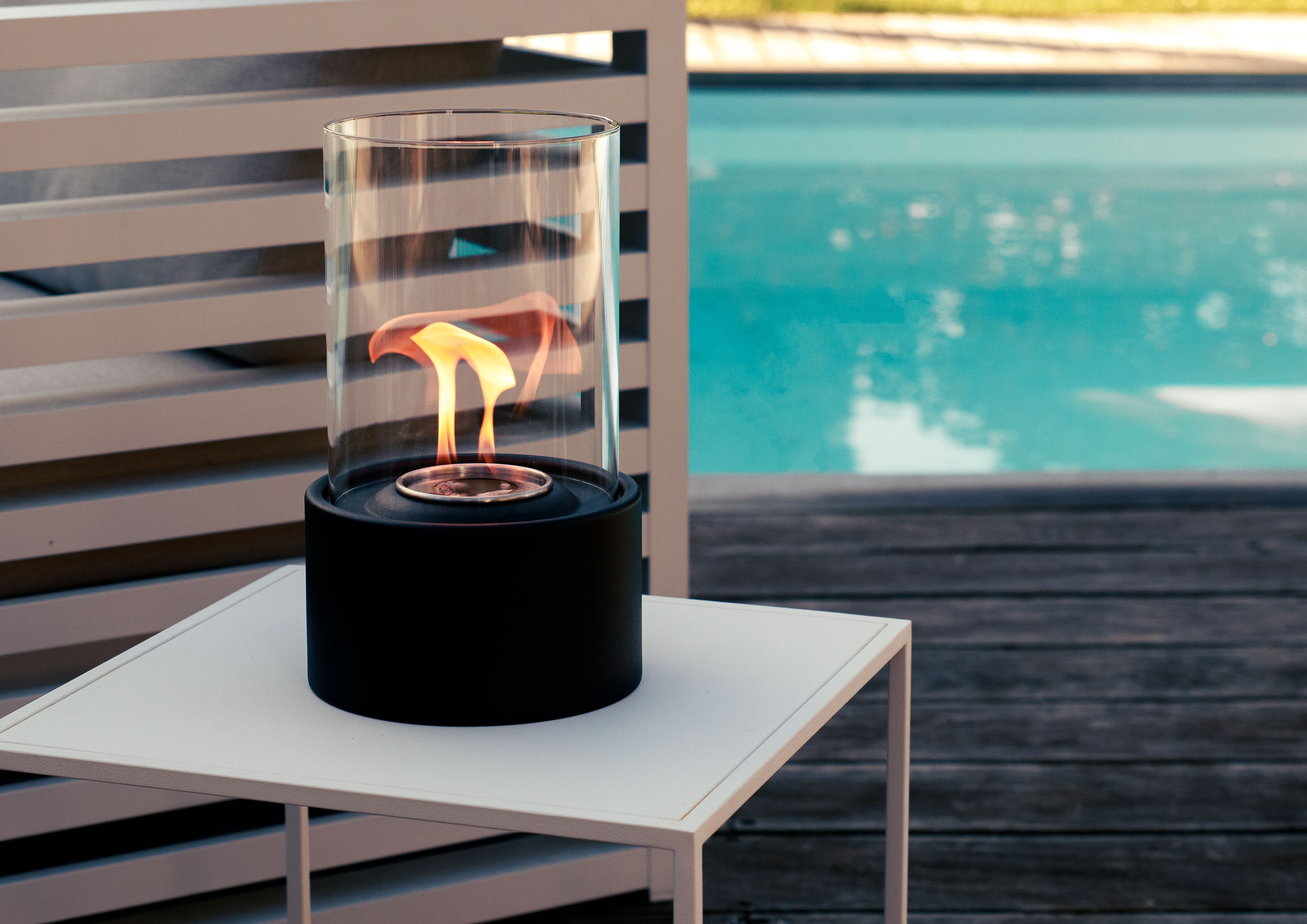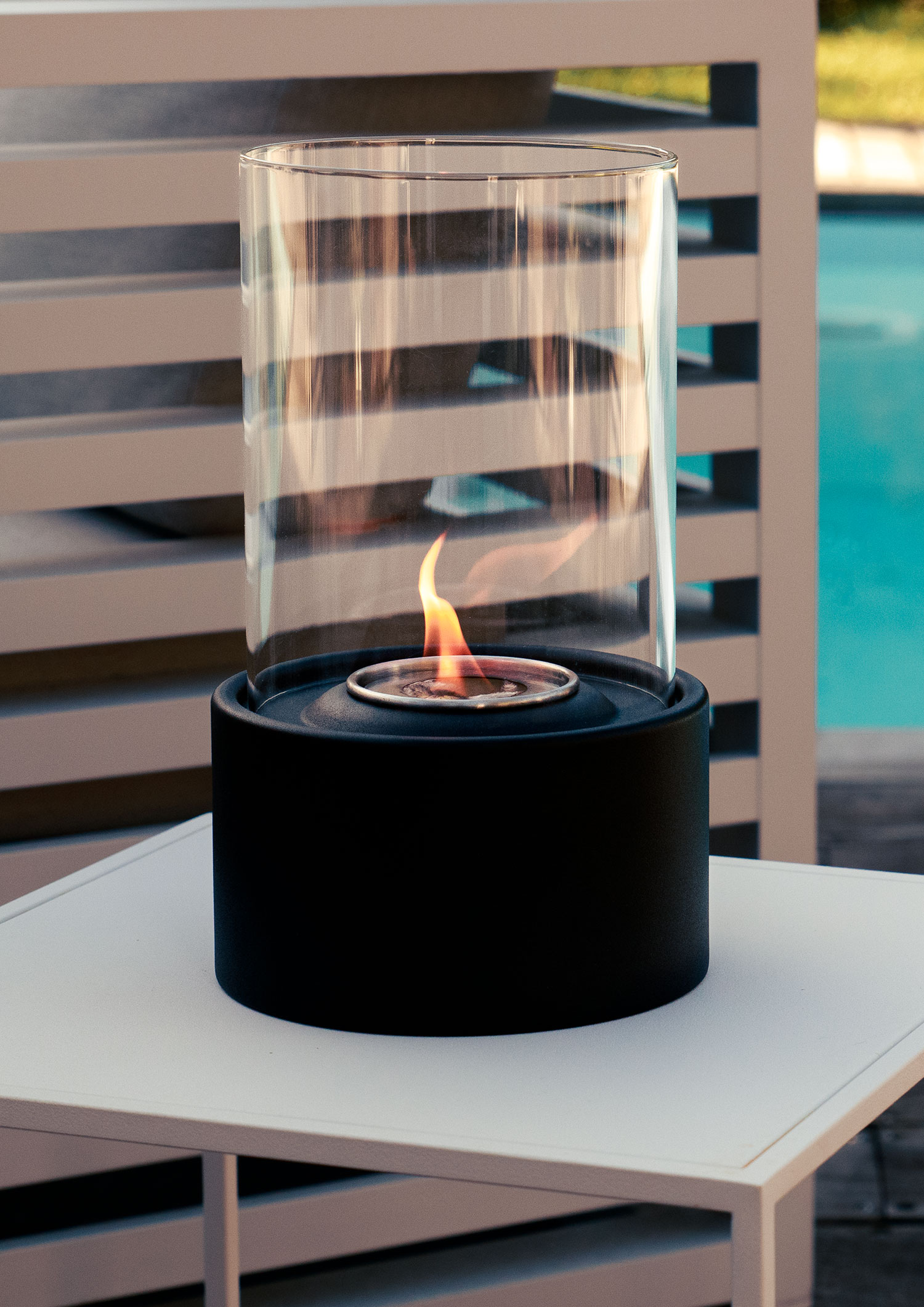 Tischfeuer (Tischkamin) mit Edelstahl-Brennkammer.