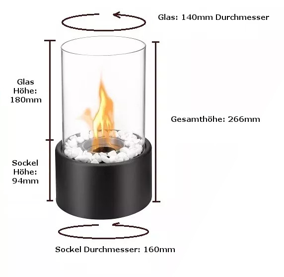 Brennmittel: Bio-Ethanol (nicht im Lieferumfang enthalten)